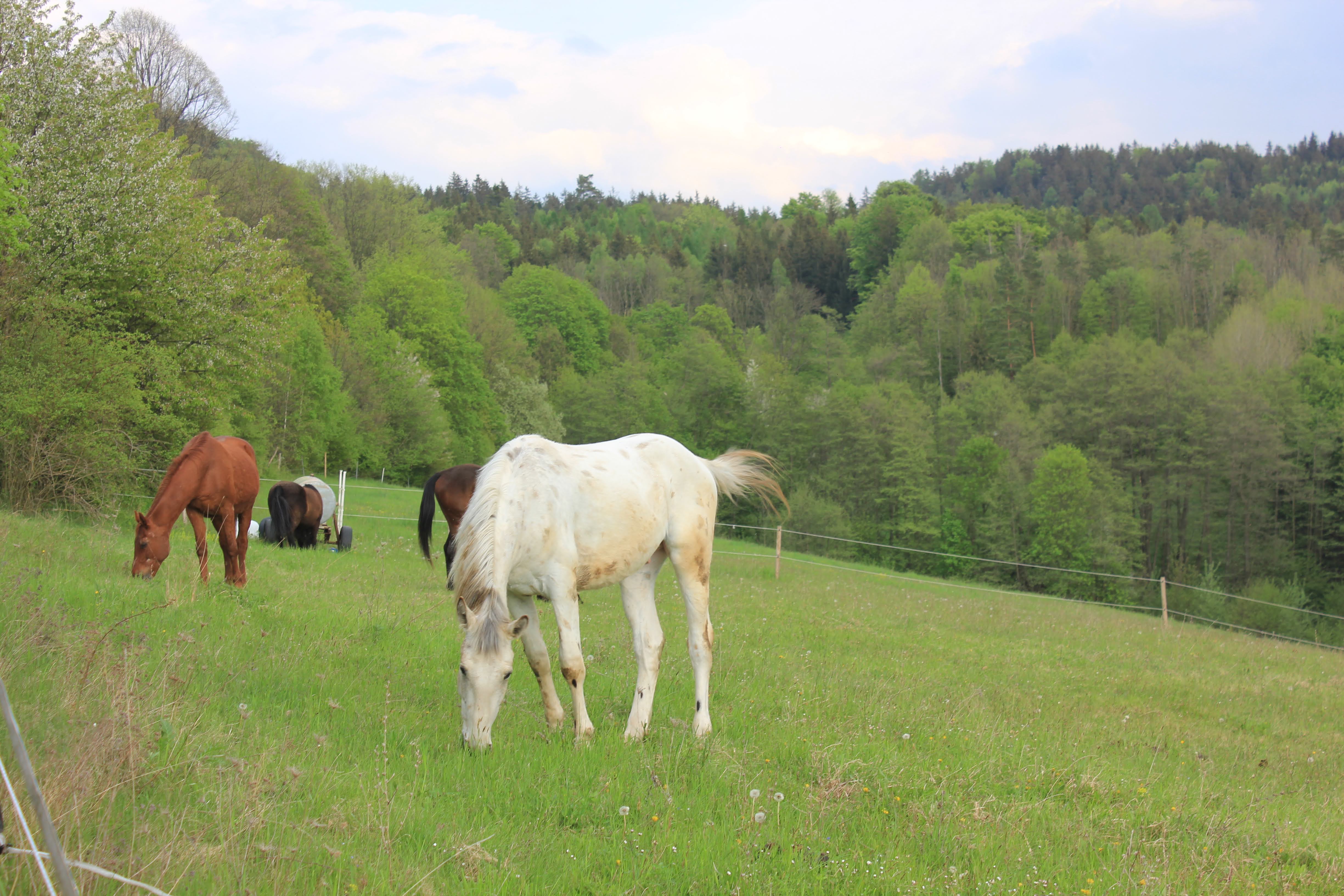Na pastvinách máme stádo do 14 koní, byť krátkodobě je možné toto číslo překročit. V letním období mají Vaši koníci k dispozici 5 Ha oplůtkových pastvin, takový menší paddock-paradise, kdy je vždy otevřen jeden výběh a koně jsou motivovaní k pohybu mezi vodou, senem a pastvou. Podmínky pro ustájení: vychovaný kůň, respektující el. ohradník, bosý. Veterináře, podkováře dle potřeby a dohody s majitelem můžeme zajistit. Ke stáji je dobrá dostupnost autem, ale i autobusem z Moravské Třebové.